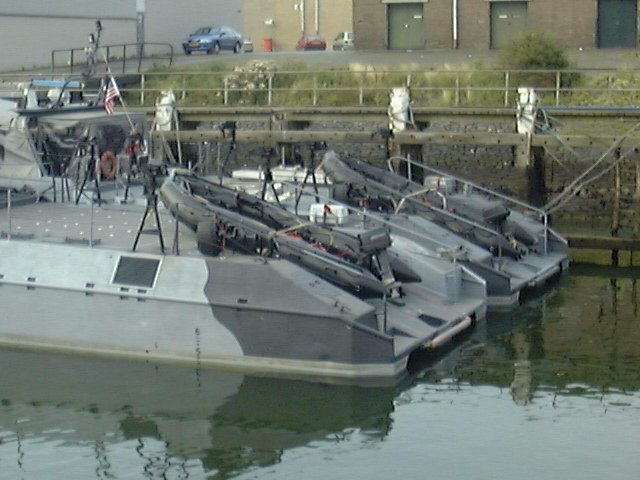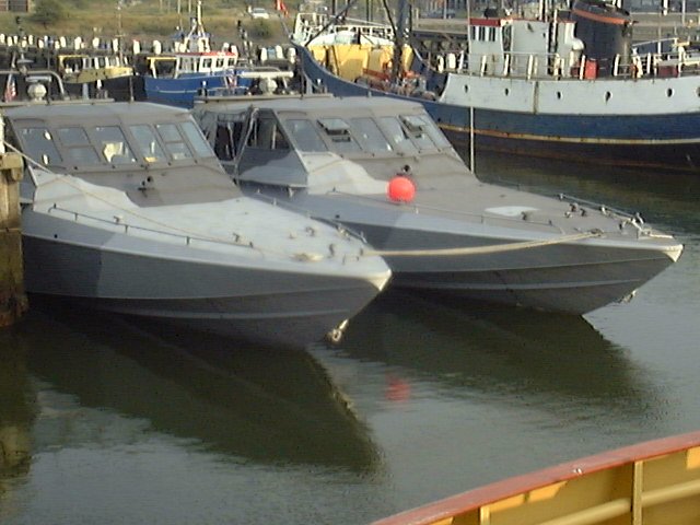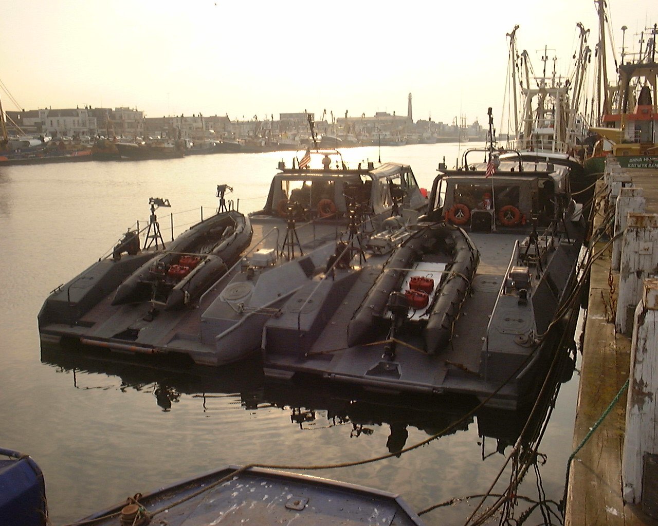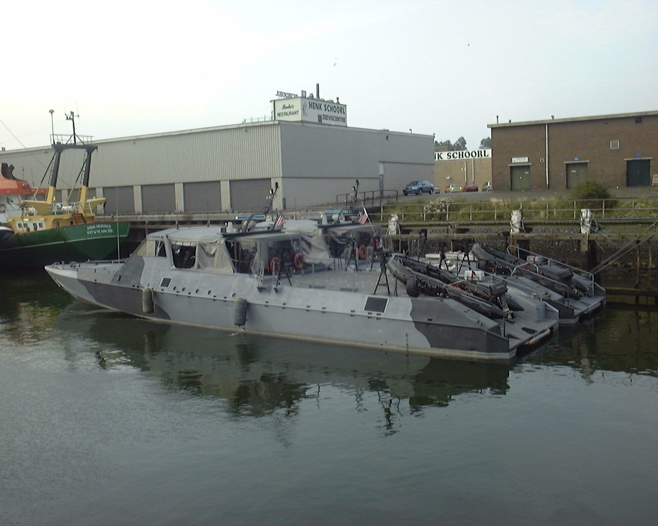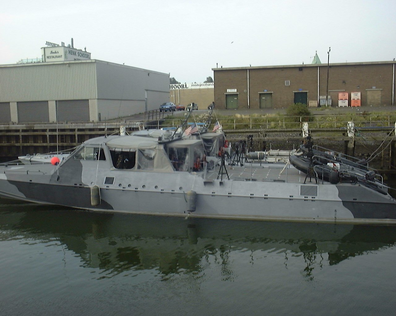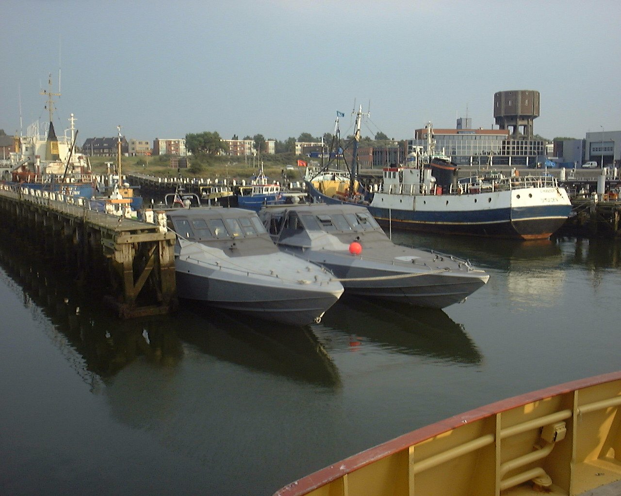 Op vrijdag 27-7-2001 om ongeveer 16.45 uur kwam er op 82.100 ( kan. 15 van mobilifoon van de marechaussee ) een melding binnen dat er 2 boten van de Amerikaanse NAVY SEALS vanuit het zuiden kwamen ( herkomst onbekend ) en dat zij zouden aanmeren achterin de vissershaven.Uiteraard zijn wij daar meteen even een blik gaan werpen en een paar plaatjes gaan schieten. Na een kort gesprekje met een van de bemanningsleden bleek dat zij eigenlijk een nacht of 2 hadden willen blijven liggen in de haven , maar wegens een te kort aan kamers in het hotel was dat niet mogelijk , dus vertelde hij dat ze zaterdag om ongeveer 9:00 uur weer zouden vertrekken uit de haven en dicht op de kust ( daar zijn deze boten speciaal voor gemaakt ) hun reis richting Duitsland voortzetten. Om de oceaan over te steken richting Amerika worden de boten in een ander schip geladen  , zij zouden daar niet op gebouwd zijn en niet oceaan waardig zijn.